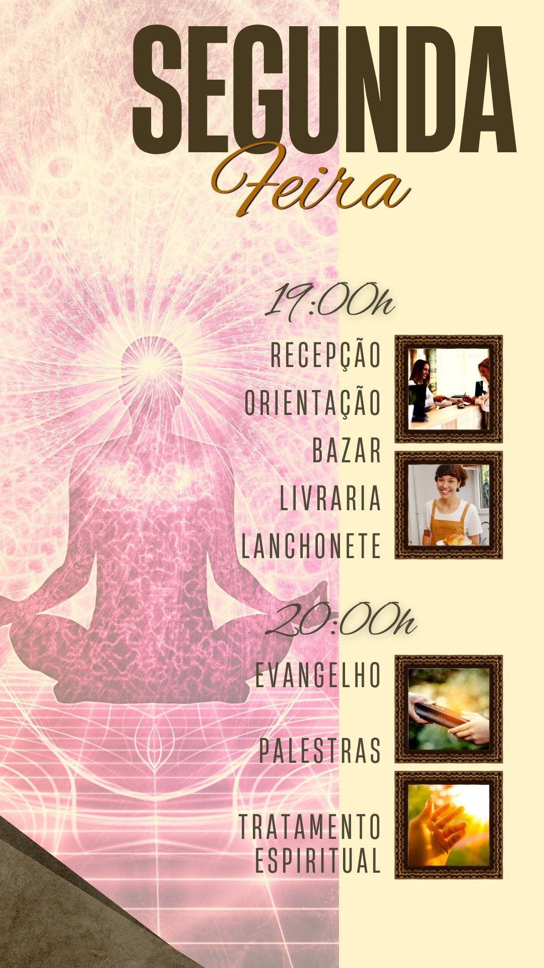 É um curso essencialmente organizado para proporcionar a vivência do espiritismo para jovens, carinhosamente chamada de Escola do Coração, por desenvolver um clima de “ameaça zero”, cujo foco é o acolhimento dos sentimentos, formando um grupo verdadeiramente fraterno e amoroso, além de ser o nome da área no Centro Espírita que está dedicado à adolescência. Tem como principal objetivo promover a construção da base religiosa e moral para que o jovem seja um cristão ativo, sentindo-se preparado e fortalecido para a vida em sociedade e para caminhar encarando os desafios da vida com equilíbrio e bom senso. Através da arte, as turmas se envolvem ainda mais, com os teatros e músicas, além de outras formas de expressão; onde os jovens potencializam o entendimento de seu papel na sociedade e crescimento espiritual de uma forma mais lúdica, divertida, envolvente e emocionante. Gostou? Então, se você tem entre 14 e 18 anos, pode conhecer uma turma de Mocidade!